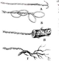 А - якорь; Б - кольца; В - чурбак; Г - ветка