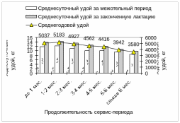 С увеличением продолжительности сервис-периода до шести месяцев удои снизились до 3576–3955 кг, тогда как максимальные (4927–5037 кг) наблюдались уже в первые три месяца. Таким образом, наиболее интенсивно используются коровы при осеменении во вторую охоту.