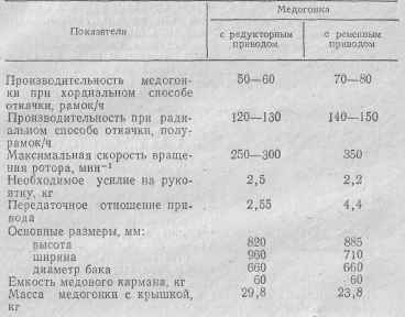 Медогонка имеет крышку, функциональное назначение которой не только санитарно-гигиеническое, но и эксплуатационное (исключается вентиляционный эффект, способствующий разрушению сотов), Техническая характеристика медогонки приведена в табл.