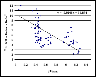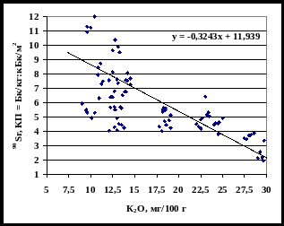 Рис. 2. Влияние основных агрохимических свойств аллювиально-дерновой почвы на величину коэффициентов перехода 90Sr в травостой пойменного луга
