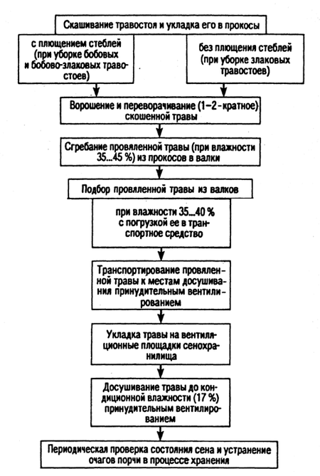 Рисунок 1 - Схема технологического процесса заготовки и хранения сена