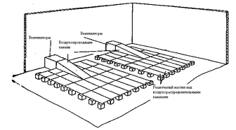 Рисунок 3 - Установки с центральными и боковыми воздухопроводящими и распределительными каналами, заглубленными в грунт
