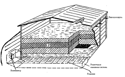 Рисунок 2 - Схема напольной установки решетчато-канального типа для вентилирования сена воздухом