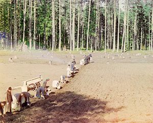 Поява в Російській імперії картоплі пов’язана з ім’ям Петра 1, який в 1697 році прислав мішок бульби з Голландії, ніби для розсилки по губерніях для вирощування. Але картопля не отримала по полярності в народі. Як французи селяни вважали її отрутою, а розкольники „чортовим яблуком”. В той час було розповсюджене таке прислів’я „Кто пьет чай тот отчается, кто ест картовь у того на душе ков”. Початок широкого розповсюдження картоплі поклав указ Сенату в 1765 році, в період правління Катерини 2, і завозу з закордону насіннєвої картоплі, розісланого по країні.