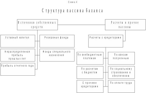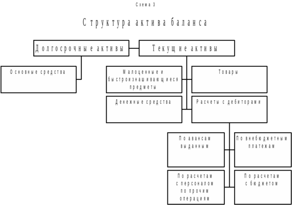 В активе и пассиве баланса ТД *Центролит* отражены следующие статьи (схема 3 – актив, схема 4 – пассив).