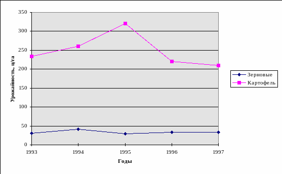 Рис. 4. Урожайнсть сельскохозяйственных культур.