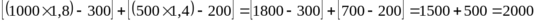 | Выручка | 1440 [1000-(100020%)]1,8 | 560 [500-(50020%)]1,4 | 2000 |