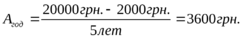 Рассмотрим каждый из методов, используя данные примера. Предприятие приобрело оборудование стоимостью 20000 грн. Ликвидационная стоимость оборудования определена в размере 10% его стоимости, т.е. в сумме 2000 грн. Предполагаемый срок полезного использования – 5 лет.