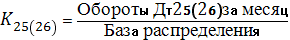 Метод предполагает распределение косвенных расходов через коэффициент 25 или 26 счёта.