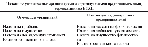 Переход на уплату ЕСХН предусматривает отмену налогов, перечисленных в таблице: