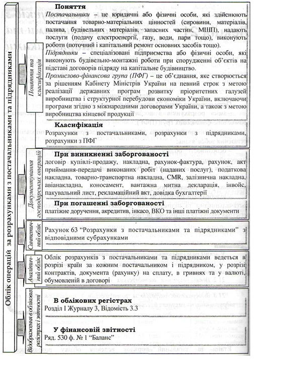 4. Відображення операцій за розрахунками з постачальниками та підрядниками на рахунках бухгалтерського обліку