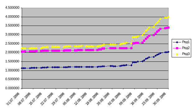 2. Розрахувати оффіційні крос-курси USD\DEM , EUR\DEM (ECU\DEM), EUR\USD (ECU\USD) станом на 01.07.1998 року ; 01.08.1998 року ; 01.09.1998 року .
