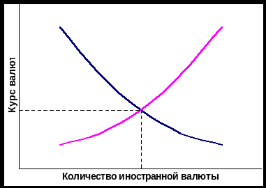 В современных условиях валютный курс формируется, как и любая рыночная цена, под воздействием спроса и предложения. Уравновешивание последних на валютном рынке приводит к установлению равновесного уровня рыночного курса валюты. Это так называемое «фундаментальное равновесие» (рис. 1.2.1.)