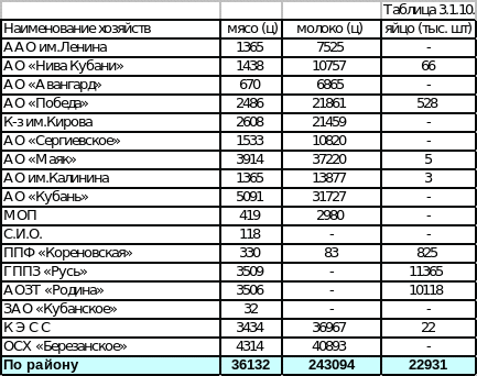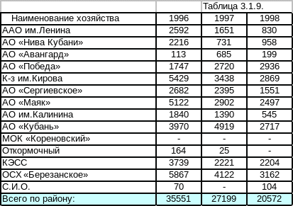 Из таблицы мы видим, как за последние 3 года резко уменьшилось поголовье свиней в хозяйствах района, но в некоторых хозяйствах поголовье увеличилось.