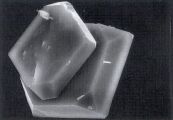 ис. 56. Сканированная электронная микрофотография кристаллов натрия урата в закисленном мочевом осадке собаки, описанной в рис. 43,54 и 55. Обратите внимание на маленький в форме алмаза кристалл (увеличение Х 2,340).
