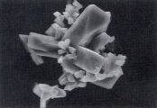 ис. 39. Сканированная электронная микрофотография струвитных кристаллов, описанных в рис.38 (увеличение Х 1,800).