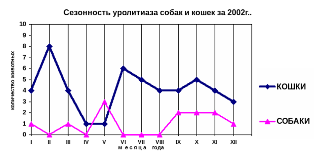 Половая, видовая, породная особенности уролитиаза кошек. Сезонность, качественные характеристики.