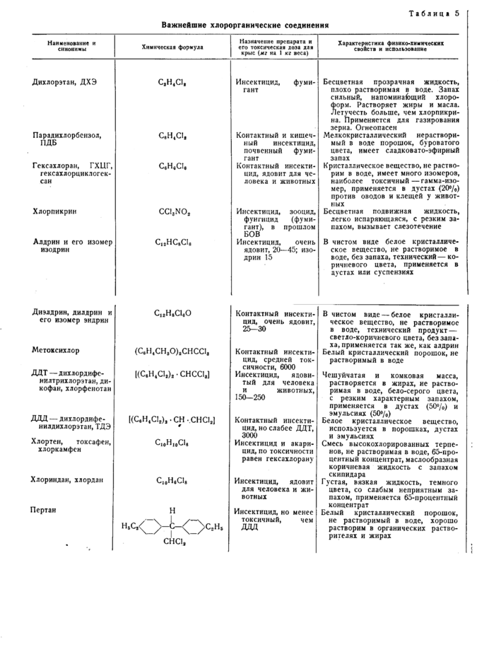Основные представители данной группы хлорорганических соединений—инсектицидов, иллюстрируются в табл. 5.