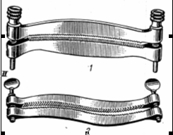 Для проведения операции купирования ушных раковин у собак требуются следующие инструменты: скальпель (прямой или брюшистый), винтовые ушные лещетки (Рис. ), кишечные зажимы, иглодержатель стандартный или специальный (Рис. ), игла кожная изогнутая.