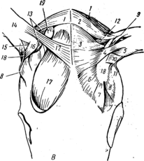 15. m. rotator auris brevis (короткий вращатель);16. m. rotator auris longus (длинный вращатель); 17. височная м.; 18.scutulum (щиток);