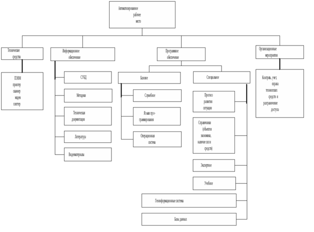 Автоматизированное рабочее место (АРМ), представляет собой место пользователя ПЭВМ, оборудованное средствами, необходимыми для автоматизации выполнения дежурным функций планирования и организации действий сил РСЧС. Такими средствами, как правило, является персональный компьютер, дополняемый по мере необходимости другими вспомогательными электронными устройствами (принтер, сканнер, модем).