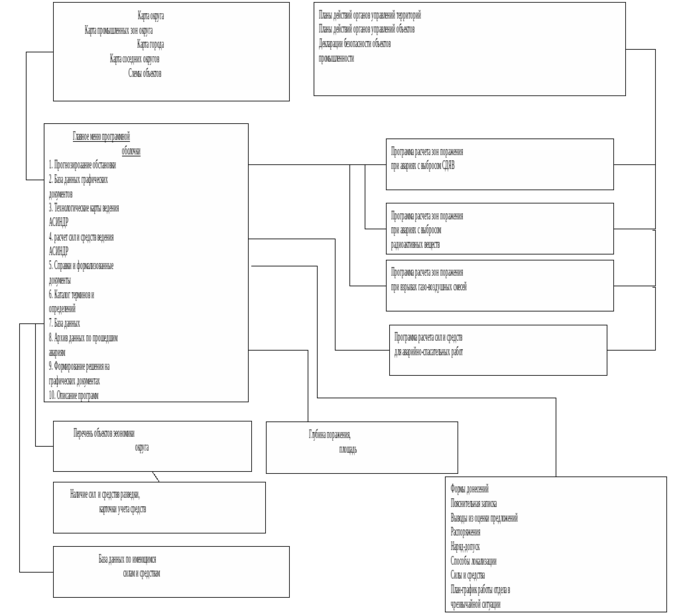 Для подготовки обоснованных расчетов сил и средств органами управления ГОЧС при организации и проведении аварийно-спасательных работ в конкретной чрезвычайной ситуации используется специальное программное обеспечение, включающее: