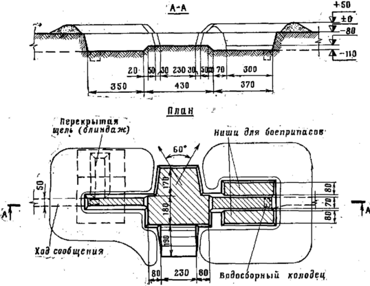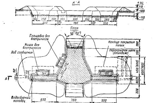 Для стрельбы с закрытой ОП окоп устраивается глубиной 90 см, а бруствер высотой 60 см.