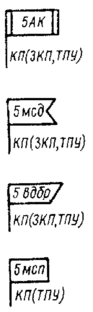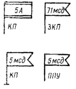 1. Стационарные защищенные пункты управления обозначаются теми же знаками с короткой подсечкой у основания флажка, передовые и вспомогательные - знаками 3/4 их размера.