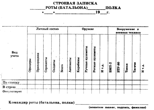 | В линию ротных колонн: поднять обе руки вверх, сложить их накрест над головой и держать неподвижно | То же, имея в правой руке желтый, а в левой — красный флажок | Фонарь с зеленым светом размахивать над головой вправо, описывая полукруг. Возвращение фонаря в первоначальное положение производить при полупотушенном или скрытом от принимающего свете | ||