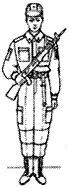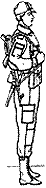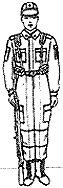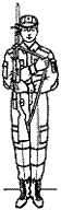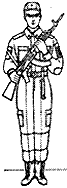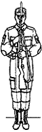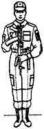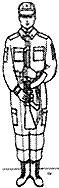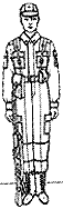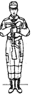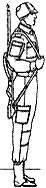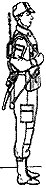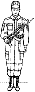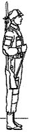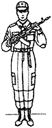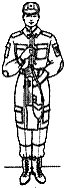 | Строевая стойка с оружием 39. Строевая стойка с оружием та же, что без оружия, при этом оружие держать в положении «на ремень» дульной частью вверх, кистью правой руки касаясь верхнего края поясного ремня, а автомат со складывающимся прикладом — дульной частью вниз (рис. 5, а, б, г). Ручной (ротный) пулемет держать у ноги свободно опущенной правой рукой так, чтобы приклад стоял затыльником на земле касаясь ступни правой ноги (рис. 5, в). Карабин держать у ноги так же, как и ручной пулемет, при этом свободно опущенной правой рукой обхватить ствол за газовую трубку (рис. 5, д). |