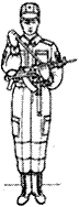 Рис. 5. Строевая стойка с оружием: а — с автоматом с деревянным прикладом б — с автоматом со складывающимся прикладом в — с ручным (ротным) пулеметом г — с ручным гранатометом д — с карабином (снайперской винтовкой)