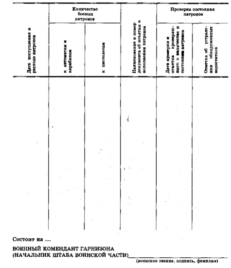 — запас боеприпасов в металлических ящиках с замками и ключами к ним;