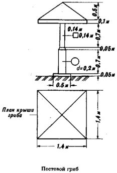 Постовой гриб окрашивается под цвет охраняемого объекта или под цвет окружающей местности.