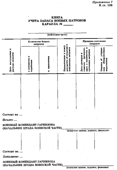 4. При выделении в караул транспортных средств их марки и номера, а также воинские звания, фамилии и инициалы водителей записываются перед выводными.