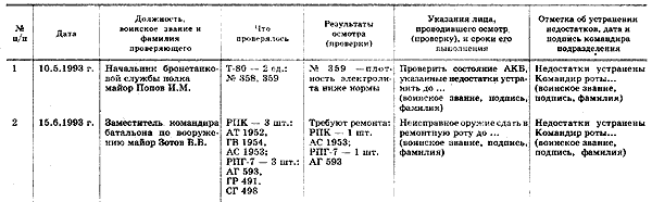 Примечания: 1. Книга хранится в канцелярии у командира роты. 2. Запись о результатах осмотра (проверки) делают командиры (начальники) от командира роты и выше.