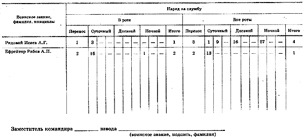 ЛИСТ НАРЯДОВ ___ ВЗВОДА ____ РОТЫ _____ НА _______(месяц, год)