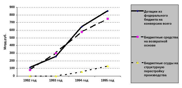 Рис. 1. Виды и объемы государственной поддержки конверсии
