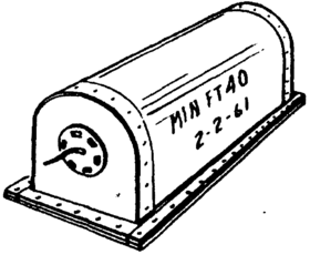 Важка, кумулятивна міна, (мал.2-38) має корпус з товстого металевого листа зі звареними швами. У міні застосовується взривач, що спрацьовує від чи збільшення зменшення натягу шнура, чи тертковий взривач; можливе застосування й інші пристрої різного типу, що приводяться в дію супротивником, що поблизу знаходиться. Іноді такі міни мали електричні взривач.