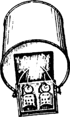 Заряд у каністрі (мал.2-43) виготовляється шляхом часткового хвилювання стандартної американський 5-галлонной (19-л) каністри з-під ГСМ вибуховою речовиною і розміщення в донної частини вибухового пристрою з годинним механізмом (від наручних годин). Заряд, що приводиться на малюнку, має два вибухових пристрої для забезпечення більш надійного спрацьовування. Очевидно, що цей тип заряду застосовується при виробництві диверсій.