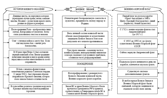 В реферате нами будут рассмотрены: знамя Вооруженных Сил Российской Федерации, боевое знамя воинской части, история государственных наград за военные отличия в России, основные государственные награды СССР и России и ритуалы Вооруженных Сил Российской Федерации.