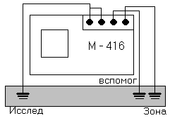 С хема подключения омметра при измерении сопротивления заземляющего устройства