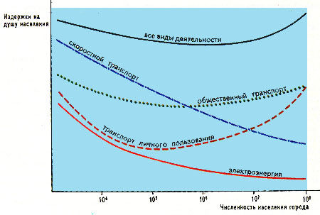 Однако экономический выигрыш от роста площади и численности населения города увеличивается лишь до определенных пределов - до тех пор, пока возрастающие транспортные расходы на перевозку товаров, сырья и пассажиров будут выгодны при данных издержках производства.
