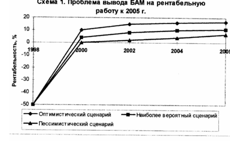 Показатели рентабельности БАМа в зависимости от сценария развития ситуации
