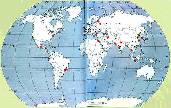 Расположение крупнейших мировых мегаполисов