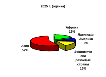 Но даже и при благополучном сценарии демографическая проблема несомненно сохранит свою остроту. Она таит в себе и много неожиданных ситуаций — ведь мир XXI века видится совсем не таким, как сейчас... Население нынешнего “третьего мира” уже к 2025 году составит 83% всех жителей Земли, но, по всей вероятности, лишь островки этого мира будут благополучными в экономическом плане. Взрывоопасная сила противоречий возрастет.