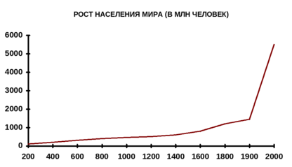 Демографический взрыв Африки, Азии, латинской Америки, с одной стороны, обеспечивает прилив свежих сил, рост трудовых ресурсов, а с другой – создает дополнительные трудности в борьбе с преодолением экономической отсталости, осложняет решение многих социалистических вопросов. Быстрый рост численности населения наступил во второй половине ХХ века. В наши дни абсолютный прирост населения Земли достигает 80 млн. человек, а в начале века составлял 10-15 млн. человек. По прогнозам ученых, к 2000 г. родится 6-миллиардный житель планеты. Ученые считают, что пик демографического взрыва позади.