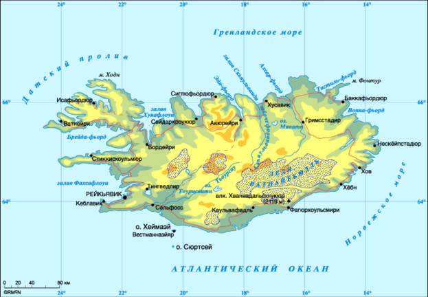 Карта Исландии.