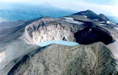 Камчатка - подлинная "страна чудес". Через всю Камчатку протянулась цепь грозных вулканов. Их здесь больше ста сорока, в том числе двадцать восемь действующих. Озера порой появляются здесь и прямо в кратерах вулканов, и тогда они поражают самыми необычными красками. Например, в кратере вулкана Большой Семячик находится Черное озеро, поверхность которого покрыта черной пленкой сульфидов железа. Кратер похож на глубокую воронку диаметром около 700 м слегка овальной формы, на дне которой лежит озеро. Отвесные стены, поднимающиеся на 200 м, напоминают слоеный пирог из лавы и туфа. Замечательным дополнением этого самого по себе интересного кратера является озеро светло-зеленого цвета. Такая окраска вызвана мельчайшими плавающими в толще воды частицами серы, вынесенными подводными фумаролами. Температура озера 30- 40 °С, средний его диаметр - около 500 м, глубина - до 140 м. Спуск к озеру возможен только с северной стороны по живым осыпям, прерываемым скалистым, ступенчатым обрывом высотой около 20 м. Берега озера в месте спуска завалены крупными глыбами. Вода на вкус обжигающе кислая. Когда вулканологи обследовали озеро в резиновой лодке, то обратно вернулись с трудом: алюминиевые лопасти весел были съедены растворенными в воде кислотами. Минерализация воды очень высокая, превышает содержание солей в морской воде. Красивый сверху изумрудный цвет озера вблизи разочаровывает, превращаясь просто в мутный.