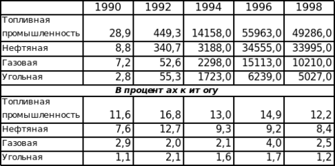 От капитальных вложений больше, чем от какого-либо другого фактора, зависит развитие топливной промышленности. Капиталовложения влияют на объём добываемого сырья и на объём промышленной продукции.