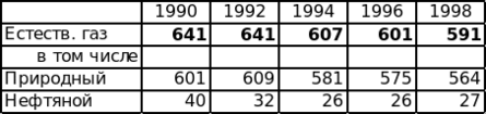 Некоторое уменьшение добычи газа было вызвано снижением потребления газа, как в самой России, так и в странах СНГ. Хотя просроченная задолженность потребителей газа выросла за год в 2,5 раза и достигла на 1 января 1996 г. 6992 млрд. р., финансовое положение предприятий отрасли было достаточно устойчивым.